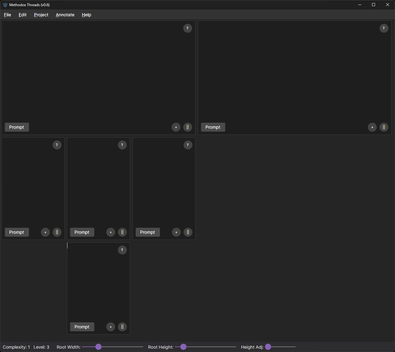 Originally created to support workflows involving generative AI conversations, Threads offers an intuitive way to organize, branch, and iterate on complex discussions. Each document can create siblings and children, forming a clear, persistent hierarchy of thought. Notes, Markdown editing, and seamless project serialization make it suitable for everything from research and writing to experimentation with conversational agents.