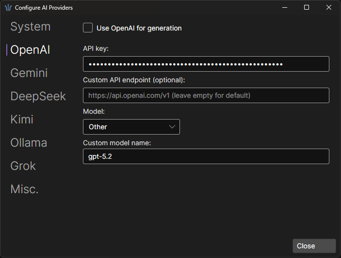 - Genereate document contents using GenAI! Allowed setting System prompt and configuration options. Currently supports OpenAI API.