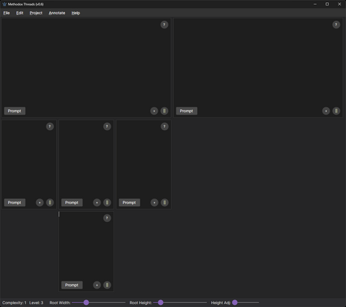 This project implements a multi-pane, branching text editor. It provides a tree-structured writing environment where each document can contain sibling and child documents, displayed simultaneously in a scrollable, linear canvas layout.